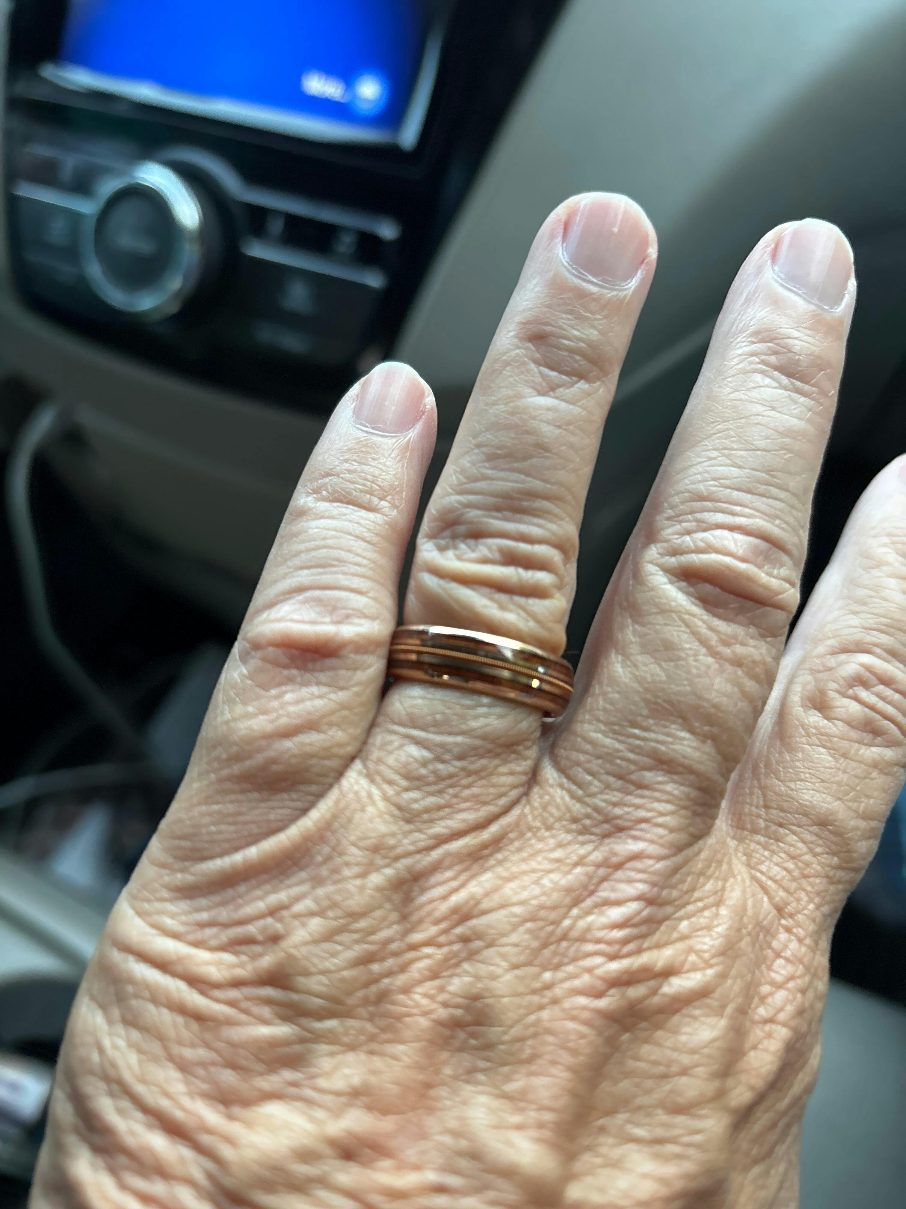 Crafted with meticulous precision and unwavering attention to detail, this ring features an inlay of genuine whiskey barrel wood, imbuing the sleek black tungsten band with a touch of rustic warmth and character. The true heart of this ring, however, lies in the single guitar string delicately woven into its design, a testament to the shared passion for music that binds two souls together.